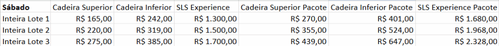 Confira abaixo os valores dos três lotes para sábado e domingo: