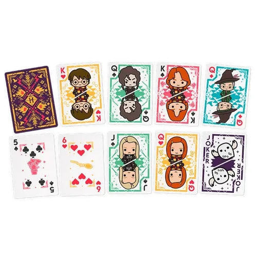 De caráter colecionável, cada carta capta a essência encantadora do universo de Harry Potter que tornaram a saga tão inesquecível. Inspiradas nas ilustrações icônicas no baralho single deck, as cartas transportam os jogadores para a Escola de Magia de Hogwarts, proporcionando uma experiência mágica em cada rodada. Já no double deck, os jogadores se deparam com as fotos dos personagens nos filmes.