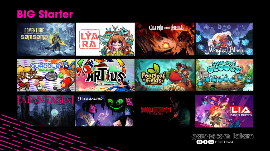Voltado à produção brasileira, o BIG Starter reúne 12 jogos nacionais selecionados pela curadoria do festival. Os títulos estarão disponíveis para teste do público em um espaço dedicado e os estúdios participantes poderão apresentar seus projetos para imprensa, publishers e parceiros da indústria.